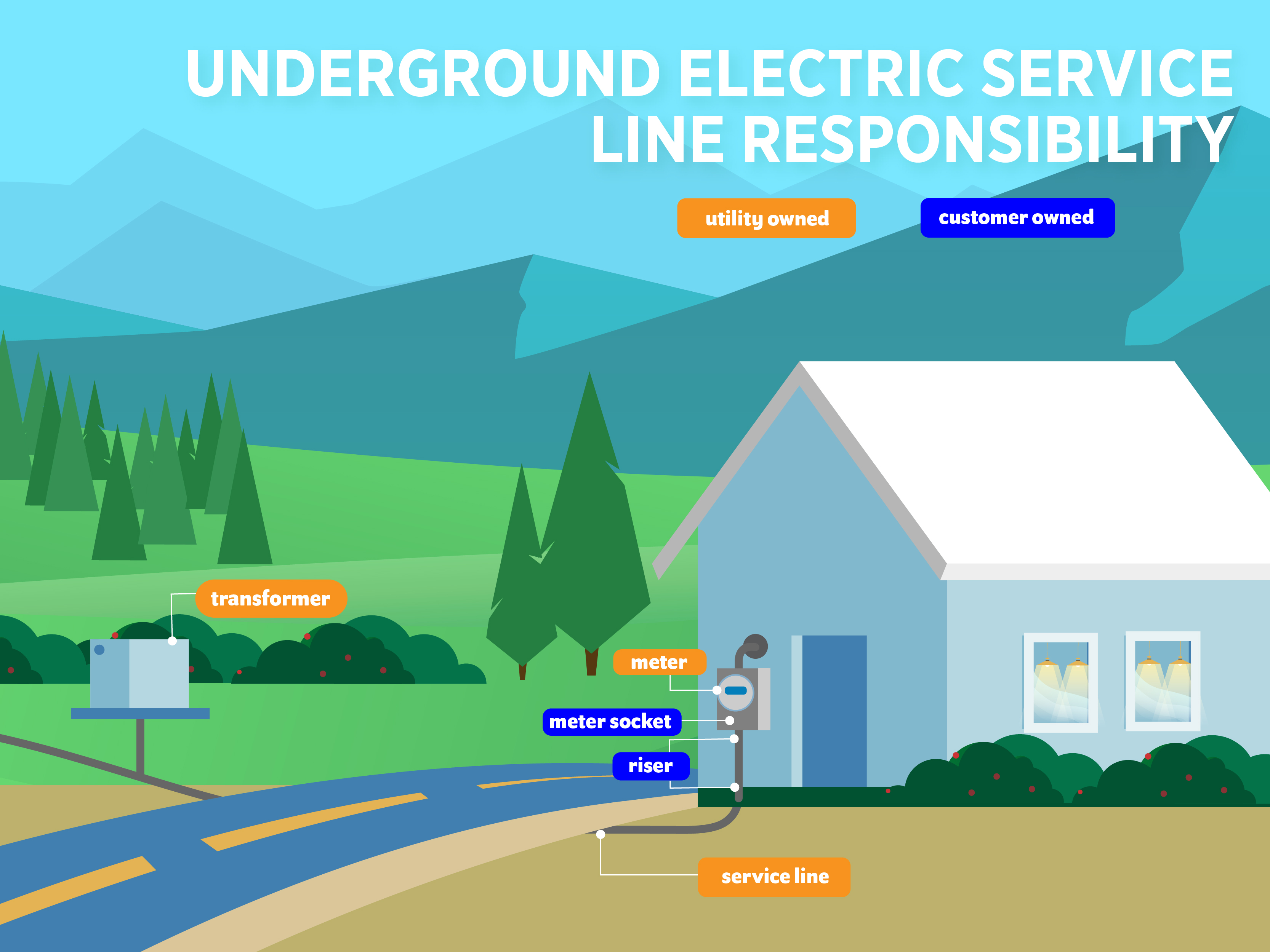 Suministramos electricidad, gas natural, agua y aguas residuales a los puntos de conexión de su propiedad. Somos responsables del mantenimiento de la infraestructura en nuestro lado de estos puntos de conexión. A partir de ahí, es su responsabilidad mantener y reparar sus líneas de servicio privadas si se deterioran o dañan.