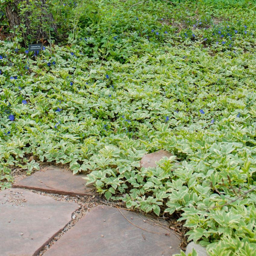 Snow-on-the-mountain is an aggressive, fast-growing plant that is capable of forming a thick groundcover in part shade or full shade.